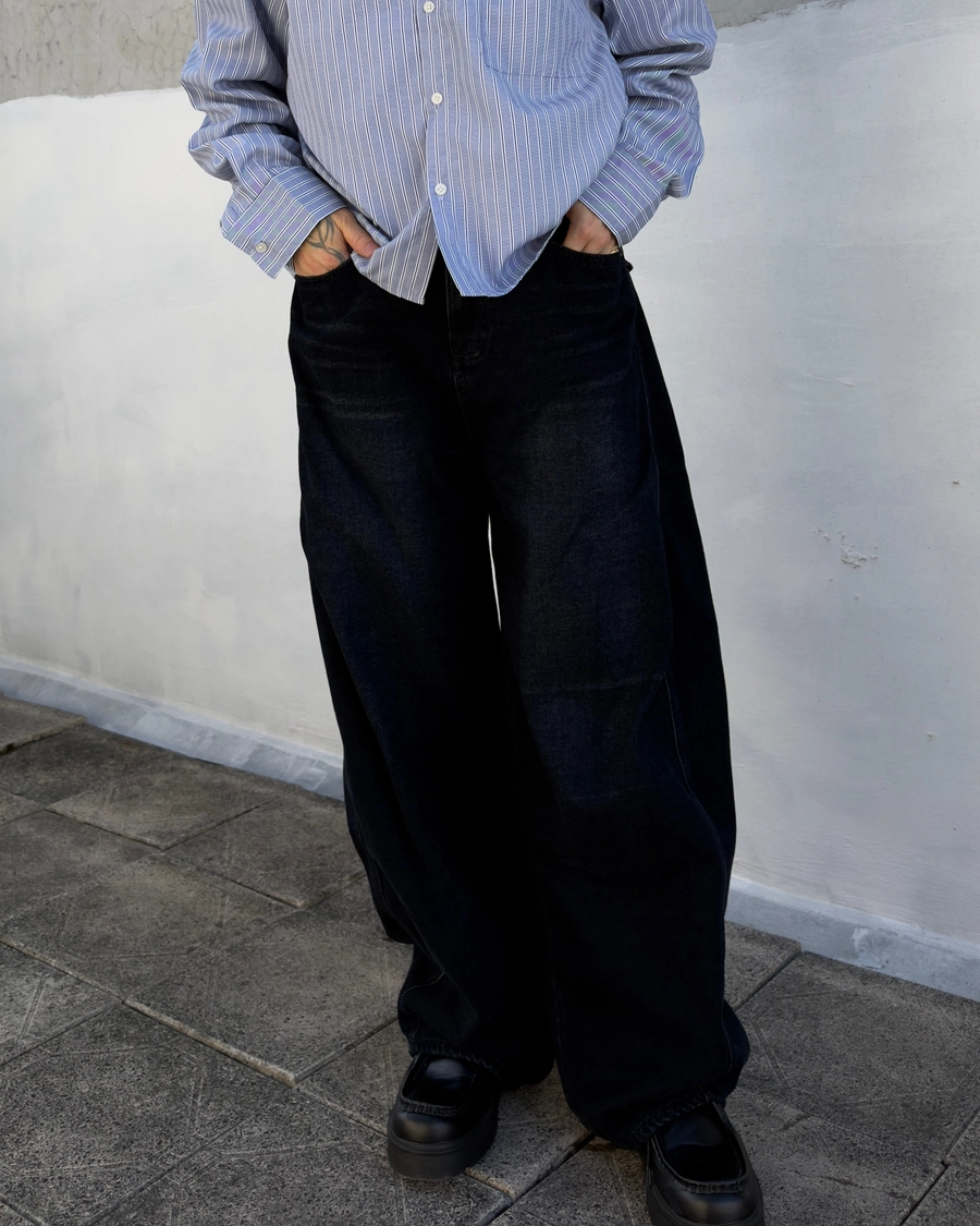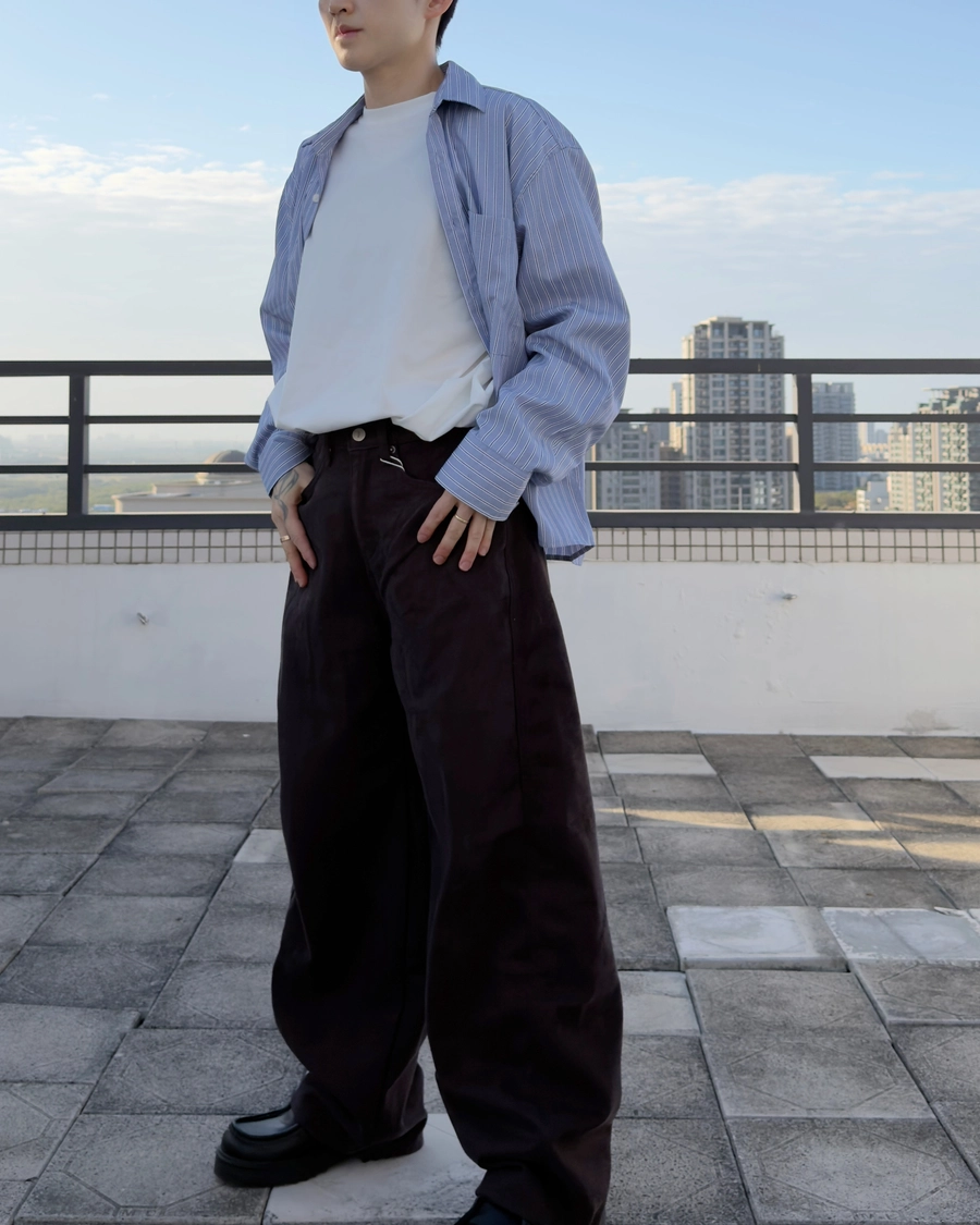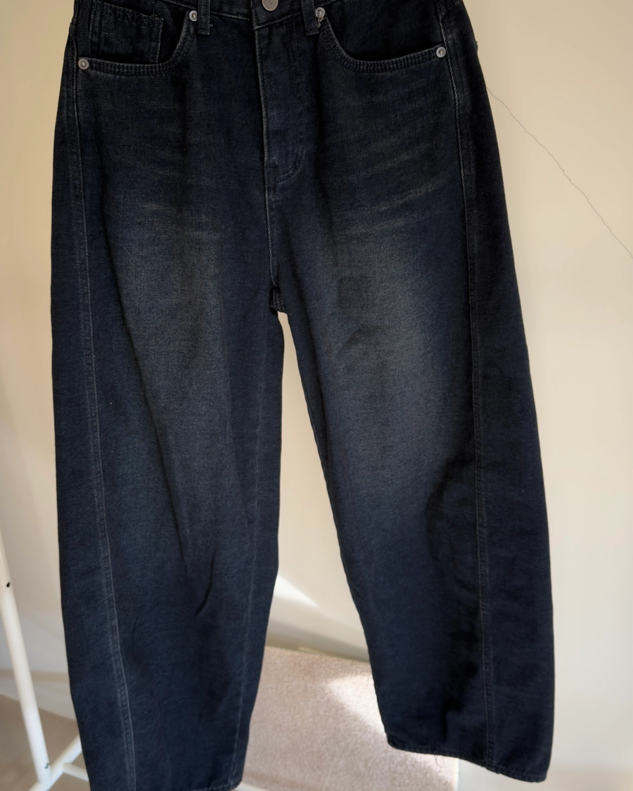 這款丹寧褲並非直筒剪裁,而是以氣球輪廓重新構築版型
